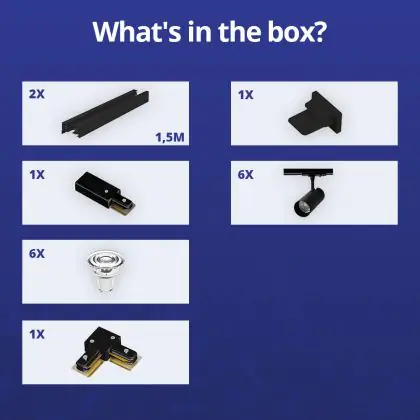Bright Choice Complete Set 1-Phase Rail L 1,5 x 1,5 Meter Black | incl. 6x Spot + GU10 2700K 3W Dimmable + End Cap, Power Connector and L -Connector