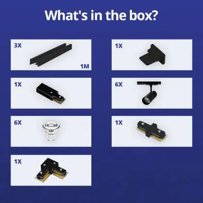 Bright Choice Complete Set 1-Phase Rail L 1 x 2 Meter Black | incl. 6x Spot + GU10 2700K 3W Dimmable + End Cap, Power Connector and L -Connector