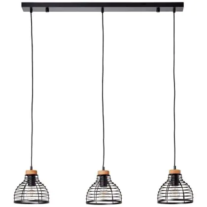 Brilliant Avia Pendant Metal Wood Black Wood | Suitable for 3x E27