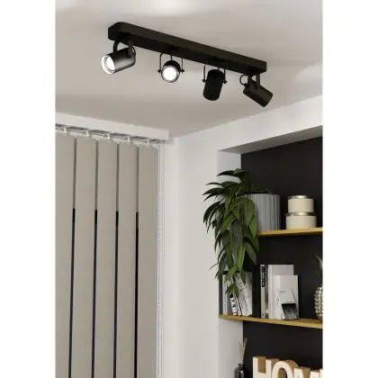 Eglo Ceiling Light Sorego Steel Black 4x2.8W 4x250lm - 830 Warm White | IP20 - Incl. 4x GU10