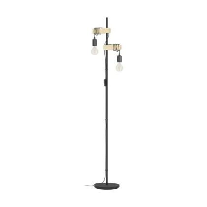 Eglo Floor Lamp Townshend Steel Wood Black Brown | IP20 - Suitable for 2x E27