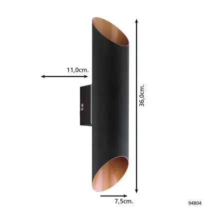 Eglo Wall Light Agolada Outdoor Galvanized Steel Black, Copper 7.4W 660lm - 830 Warm White