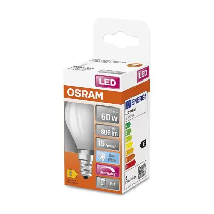 Multipack 6x Osram Classic LED E14 Ball Filament Frosted 5.5W 806lm - 840 Cool White | Dimmable - Replaces 60W