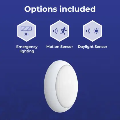 Lighting with a sensor only turns on when it receives a specific signal. This reduces energy costs. The (built-in) sensors respond to darkness (twilight switch) and/or movement (motion sensor).